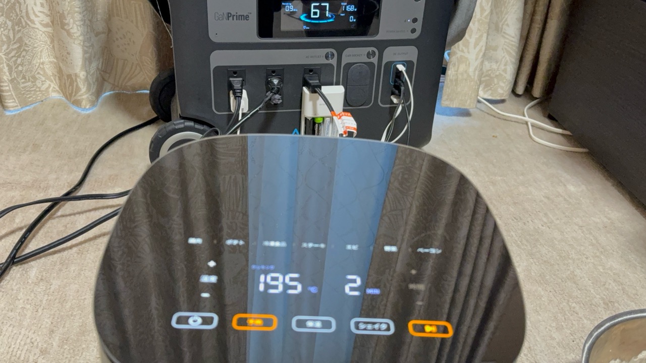 2000Whのポータブル電源のうち30%ほどを使いました。これは、災害時にも役に立つじゃんか。