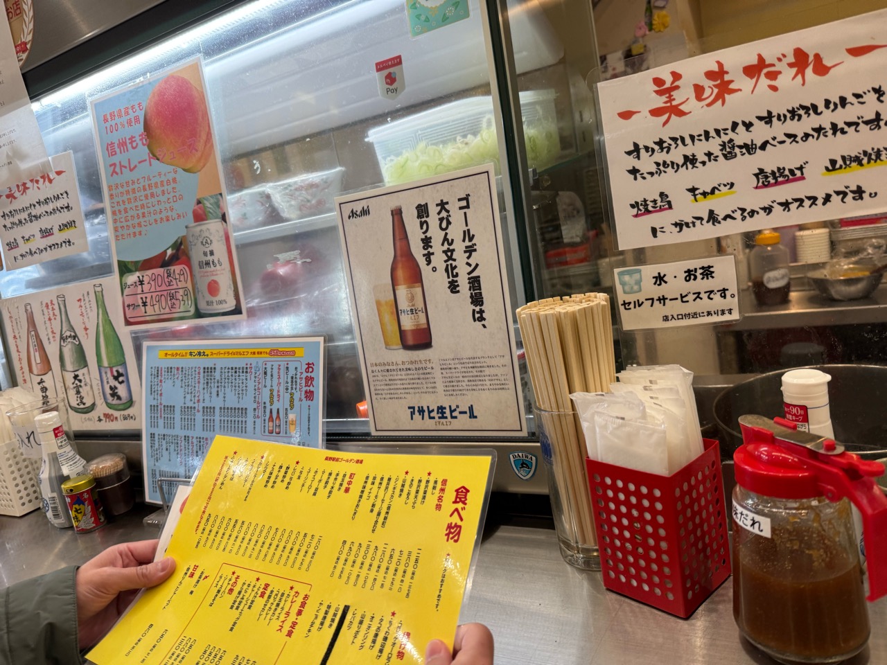 2階には宴会席があるようですが、立ち飲み感覚で来たので1階のカウンター席です。