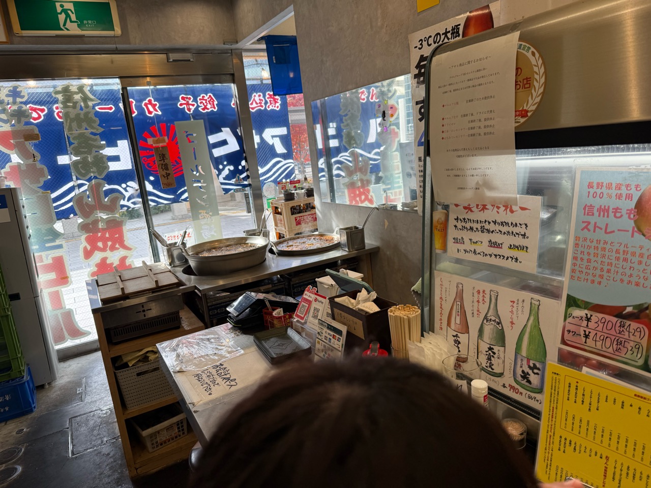 2階には宴会席があるようですが、立ち飲み感覚で来たので1階のカウンター席です。